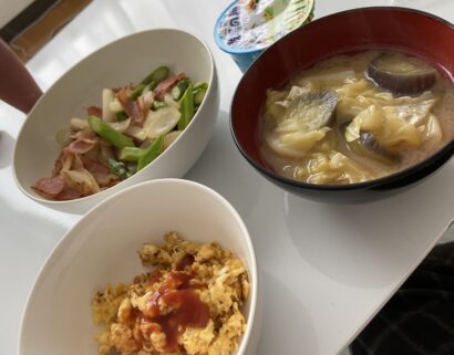 ナスとキャベツと油揚げのお味噌汁は相変わらずサイコォです。またお安い野菜を買ってきて作ろうと思います。