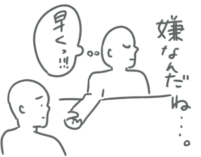 覚悟スタイルとは、目を閉じながらそっぽを向き、腕を突き出すスタイルです。心の準備はできた、さぁ早く……という気持ちを汲み取って頂きたいのですが、採血する方からは「無理しなくて良い」と心配されます。