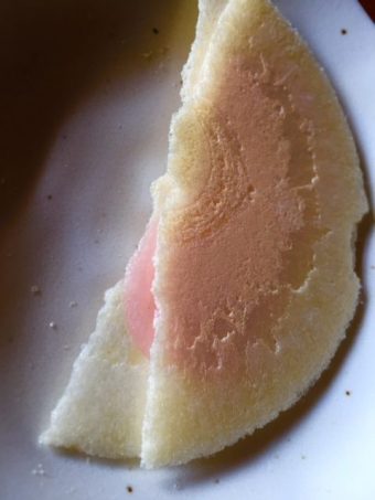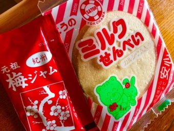 うめじゃむは酸っぱいのですがミルクせんべいが甘いのでちょうど良く優しい味わいになります。