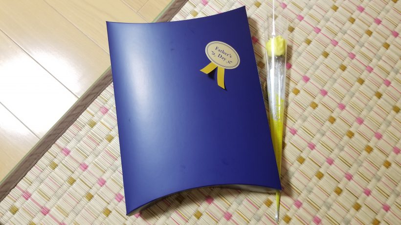 父の日専用のラッピングなので、なんかの花までついてたのがうれしい!やたらと箱がしっかりしていてちょっと面くらいました(笑)