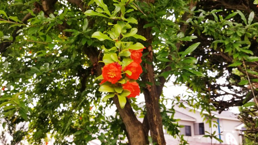 ひと段落ついたあと、なぜか叔父から『ザクロの花咲いてるれ〜』という情報を入手!