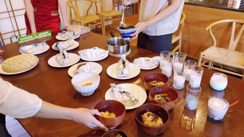 今日は女子力アップ部の活動日!今月は陽子さん宅にお邪魔して、まとめていろいろなものを作りました。今回はおとがわさんと鈴木さんをゲストに招き、大所帯でワイワイやりながらの活動でとっても楽しかったです。