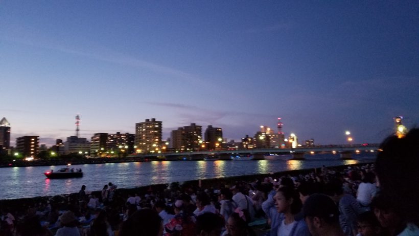 ですが今回は、事前に場所取りをしてもらっていたおかげで、ゆっくりやすらぎ堤で花火全体を眺めることが出来ました!ありがたや~><