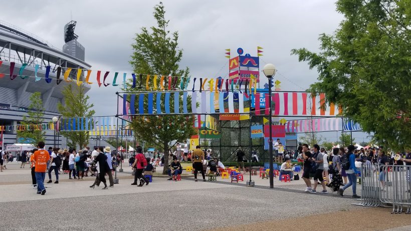 来るなり色んなバンドグッズを持ってきてる人がそこら中にいてこれぞ音楽フェスという趣でした。あと屋台スペースからずっといい匂いがして、まずそちらに心を奪われるという…( ˇωˇ )