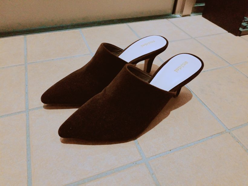 でもこのつっかけタイプかつトンガリピンヒールの靴で、自分の足にピッタリくる奴はなかなか巡り会えません…!履いた瞬間のシルエットと足への抜群のフィット感にくらっと来て、結局買ってしまいました。これはめちゃくちゃヘビーユーズしなきゃです!