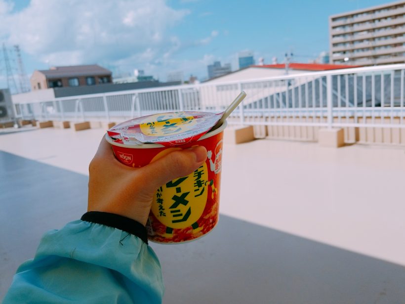 『これはあの風通しの悪い3Fで食べるのは忍びない…!』と思い、天気もよかったので屋上に退避してから食べました。