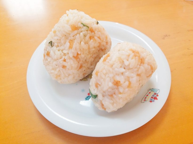 青じそペーストのおかげで風味付けはバッチリですけれども、もっとわさわさ入れた方が『映える』おにぎりになるんでしょうね…( ˇωˇ )