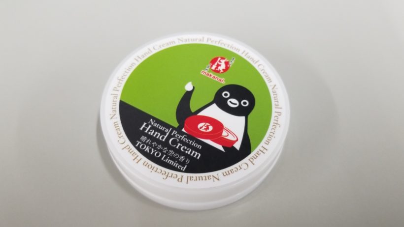 「まかないこすめ」の東京駅限定ハンドクリームです。パッケージがsuicaのペンギンで、現地で見つけた瞬間に迷わず購入しました。