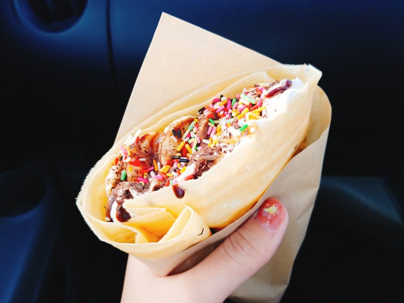 本来のお目当てだったクレープの方は、さんざん迷ってキャラメルバナナショコラをチョイス!