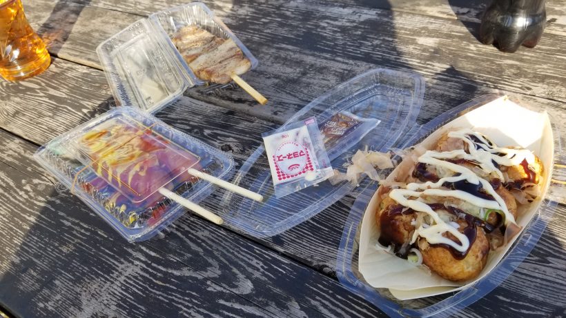 行ったのはお昼ごはんくらいの時間帯だったので、スイーツより先にたこ焼きやら豚串やらにつられてとりあえずお昼に。