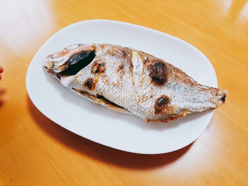 母が美味しいうちにとりあえず塩焼きにしとこう!ということですぐに焼き始めたのですが、次第に漂ってくる香ばしい鯛の香りの素晴らしいことと言ったら…!