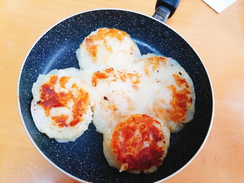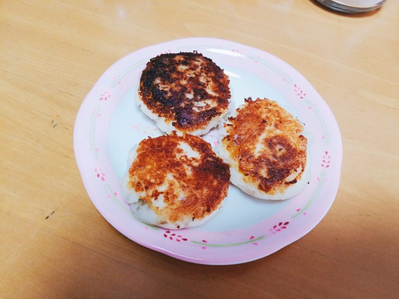 片栗粉しか入れてないせいか、ただの焼きマッシュポテトという風体です。
