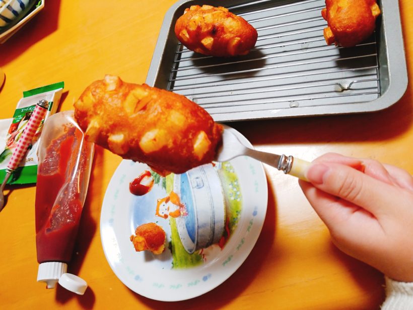 今日は仕事が終わってから、母から『ホットケーキミックス買ったからさけチー買えばハットグできるで!』とLINEが来ていました。