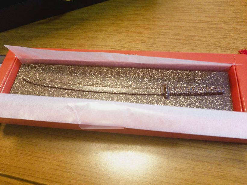 中には金粉のかかった刀のチョコレートが!!なんかリッチ!!調べたところ、織田信長公モチーフのチョコだそうです。さすが妹分かってんな〜!