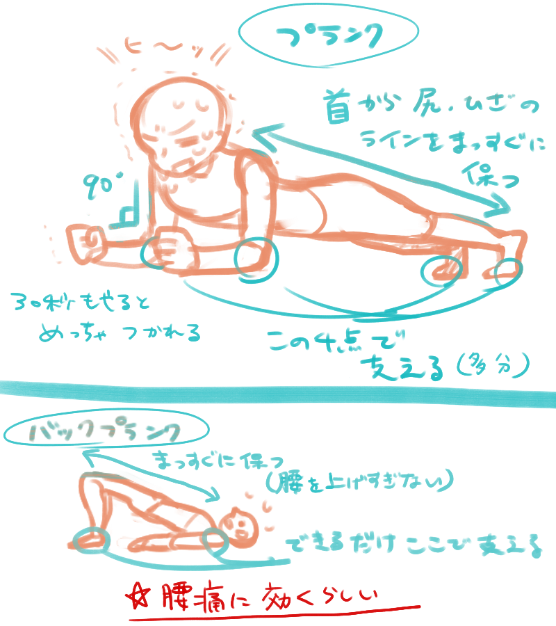前にも書きましたが、プランクとはこういう体幹トレーニングです。