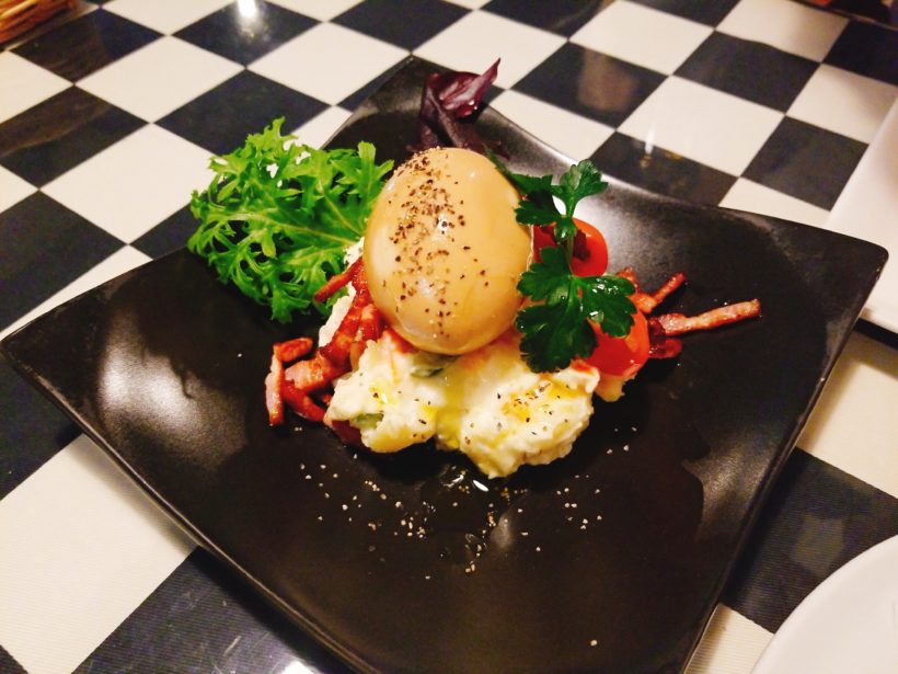 とろとろ煮卵が載ったポテトサラダに感動し、