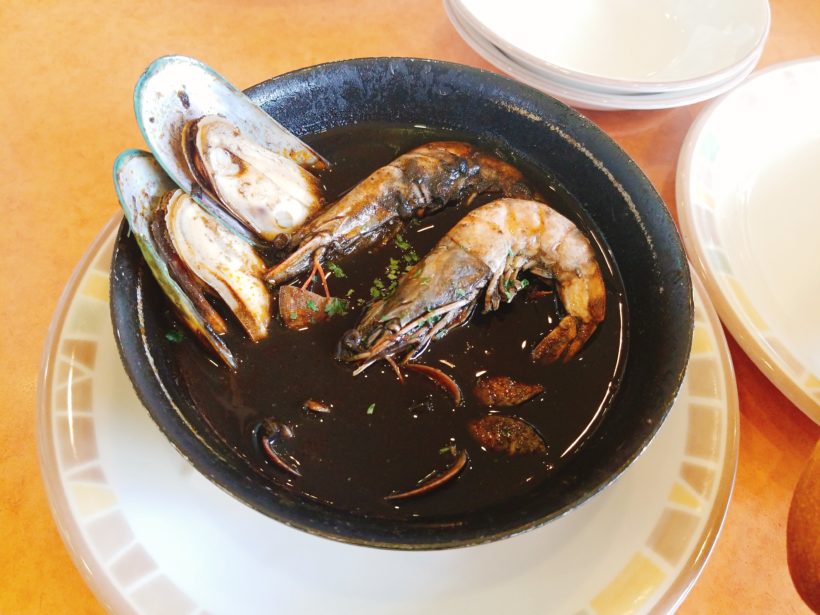 ちょっと前からサイゼリヤではイカ墨が入ったブイヤーベースが期間限定販売されていました。800円と強気な値段設定ですが、いかにも魚介好きが歓喜しそうなメニューです。