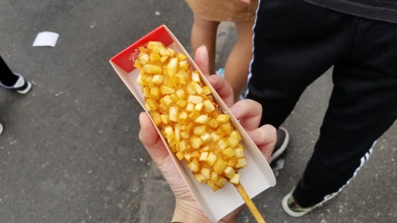 人混みをかき分け109などを物色し、新大久保で食べたのと同じお店の渋谷店で念願のポテトモッツァレラ米ハットグをたべました。
