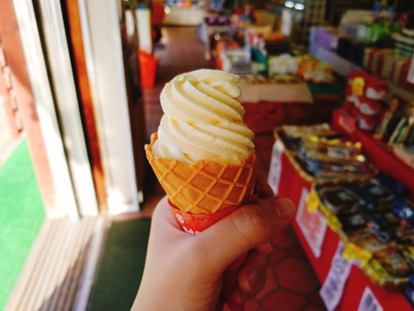 後、この近くのお土産屋さんで食べたプレミアムソフトがびっくりするほど美味しかったです。塩かけて食べるのもそのままぱくつくのも良い!想像よりも滑らかな舌触りで、まさにプレミアムなソフトクリームでした。