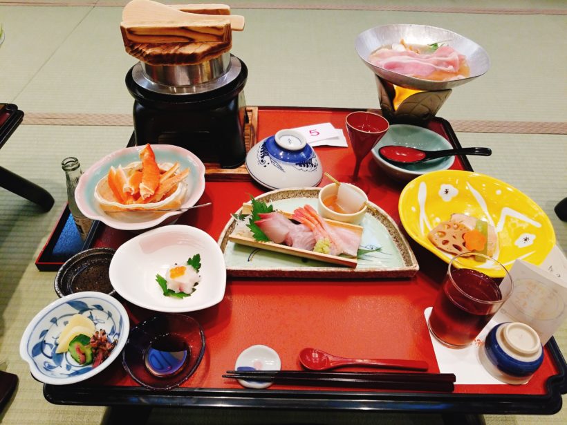 おまちかねのお夕飯は海鮮もお肉も味わえて大満足!勢い余って飾りの葉っぱまでシソかなんかだと思って食べてしまったのは苦い思い出です…( ˇωˇ )