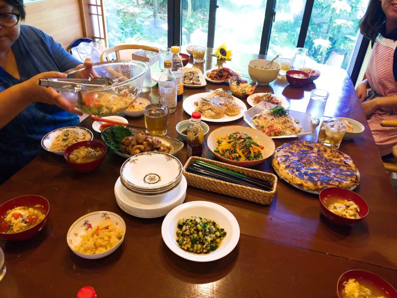 毎回かなりの量の料理がテーブルに並びます。賞味期限が近い残り物を消費する日でもあったので、急遽作ってみたものも何点か…(笑)