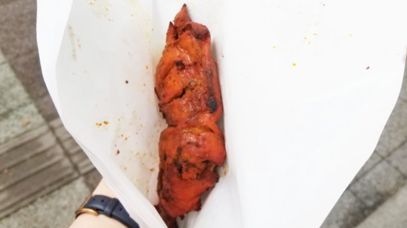 食事の最後は、テレビでも紹介されていた出店のタンドリーチキン!どうしても場所と包み的に美味しそうにとることが出来ませんでした…。