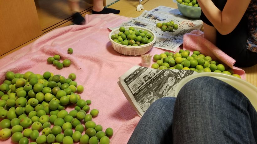 今年も祖父宅でたんまり梅が収穫できまして、今日はそいつらを加工するための下ごしらえ(?)を手伝いました。