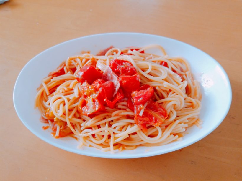 ですが、パスタにしたら旨みが濃縮されて甘さすら感じるトマトになっていて驚き!!なんならベーコンよりも満足のいく出来る具になっていました(笑)