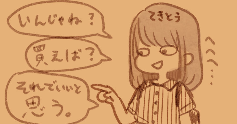 妹が着てほしいと思ったアイテムについて、親切な店員さんのアドバイスを受けつつ『いんじゃね?』『買えば?』『それでいいと思う』の3つのコメントを駆使すること1時間弱。
