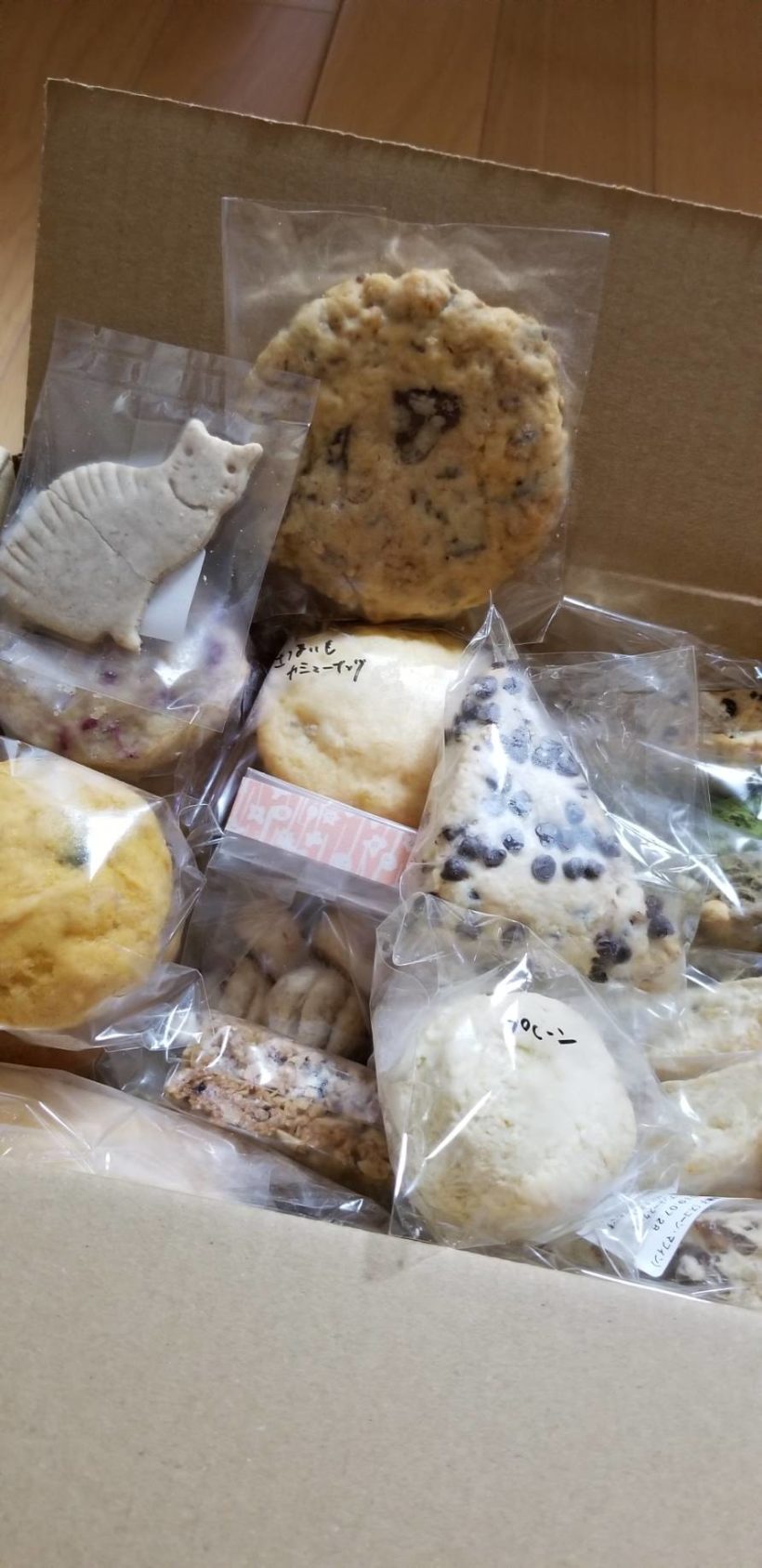 スコーンとマフィンで2500円、焼き菓子セットで1200円、送料だいたい1000円とあまりお安くはないのですが、13個くらいいろんなマフィンとスコーンが味わえて、さらにこれまたおいしいクッキー系のお菓子が食べられるというなら全然惜しくありません。