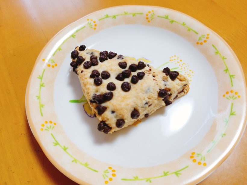 こちらのチョコチップスコーンはチョコチップのサクサク感もしっかり残っていて、なおかつ一般的なものよりチップがザクザク練り込まれているのでおすすめです。