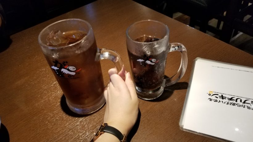 私は毎回お茶を二杯は飲むので、普通のサイズに+200円でオーダーできる『男前ジョッキ』でウーロン茶を頼みました!人生初!