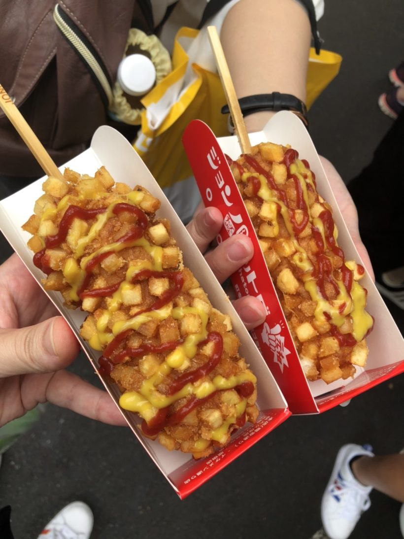友人はハットグ初めてということだったので、安定のジョンノにてポテトモッツァレラチーズ米ハットグをオーダー。