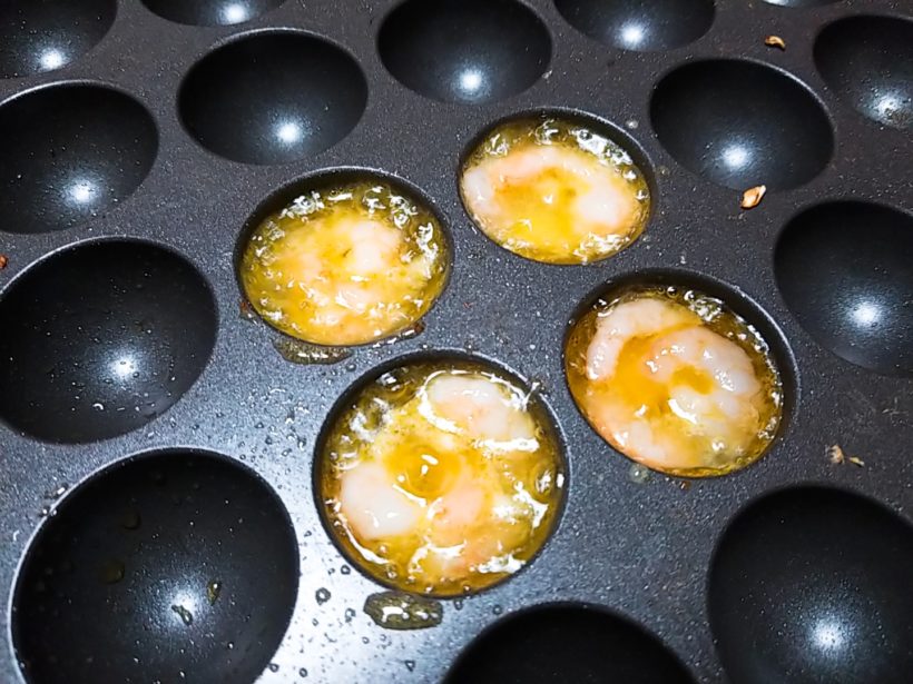 たこ焼きのほかにも、余った冷凍エビをオリーブオイル+おろしにんにく+塩で簡易アヒージョにしたり、