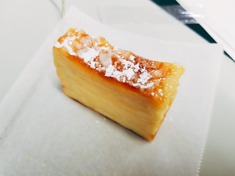 カステラと同じ感覚で、上と下のよく焼けている部分がとくに香ばしくて最高です。ケーキにおけるトロやな!!