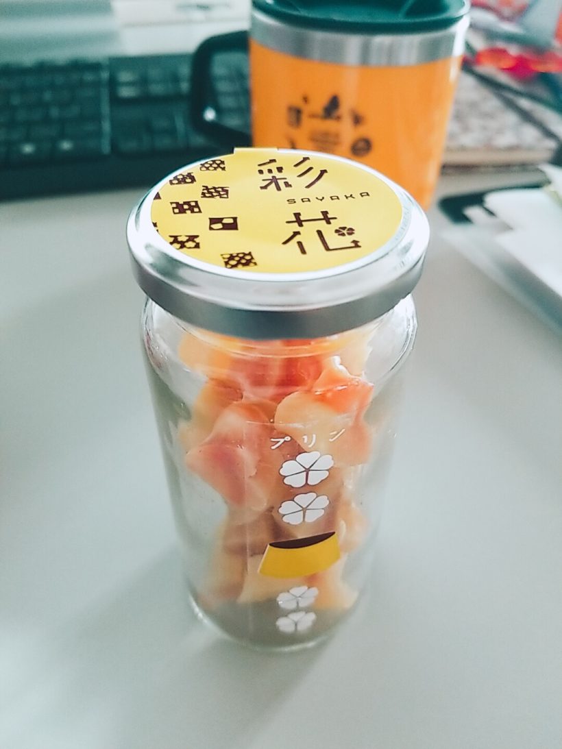琥珀糖というとただのお砂糖味が一般的ですが、こちらはなんとプリン味!材料にも鶏卵が使われています。