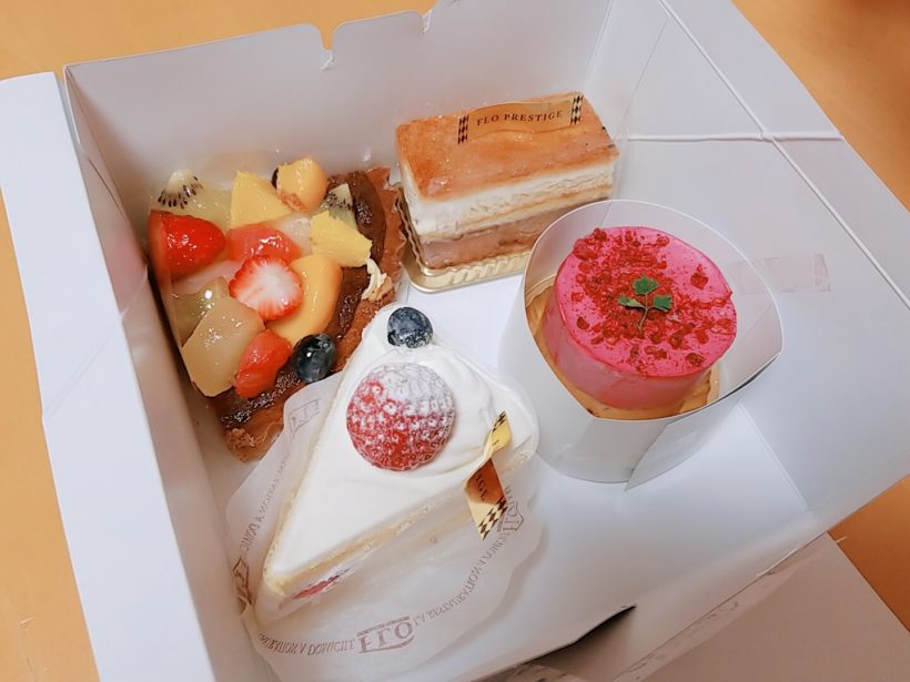ケーキは真っピンクのもの以外全部母が好きそうなやつを選びました!ショッキングピンクのケーキは父専用のフランボワーズムースです。