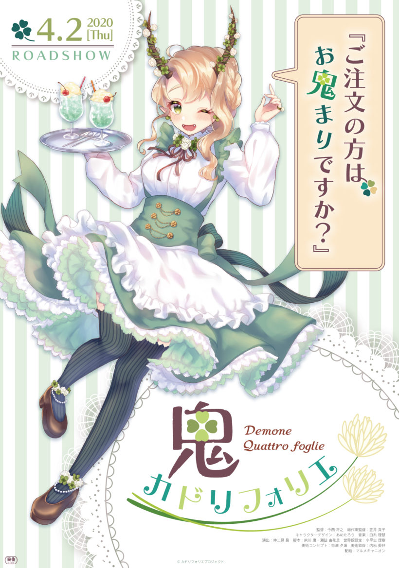 四つ葉といえばシロツメクサだよね!という発送から、春らしい装いの鬼娘が生まれました。