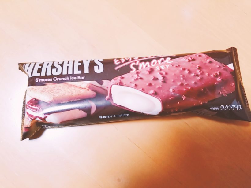 プラントに売っているHERSHEY’Sのチョコバーなのですが、こちらは『スモアクランチアイスバー』ということで、マシュマロ味のペーストが入ってます!