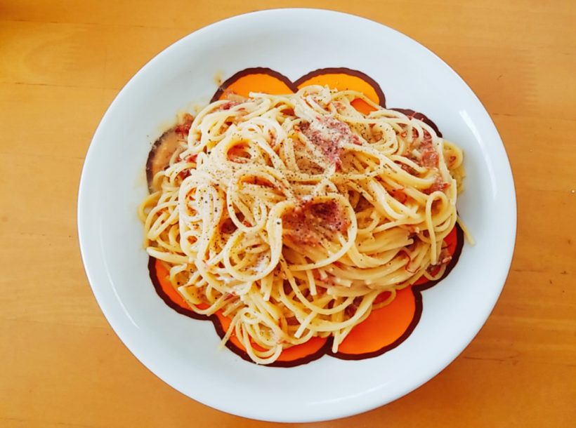 レンジで作るコンビーフのレモンカルボナーラがレンジで作ったとは思えない仕上がりになりました