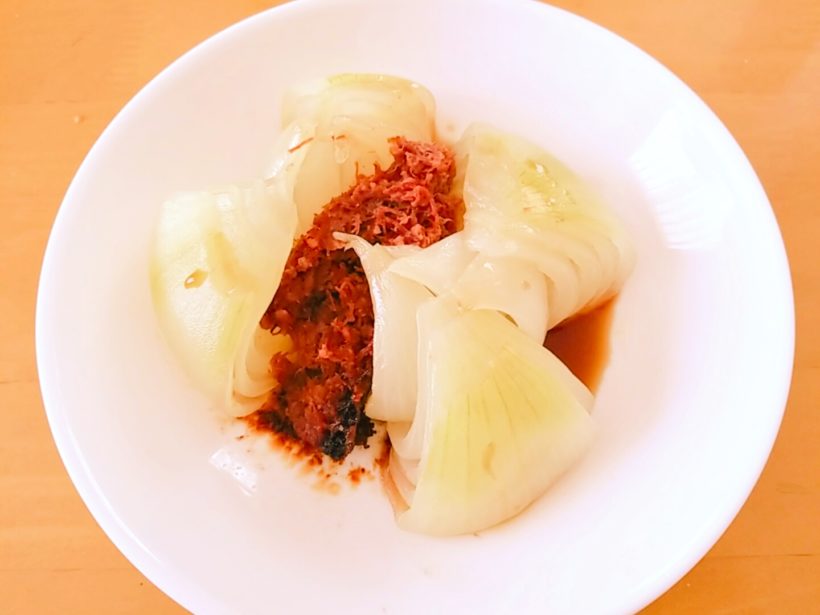 ほんとはレシピ通りにやるなら一缶まるごと玉ねぎに詰め込まなきゃなんですが、正直半缶くらいで丁度いいなと思いました。