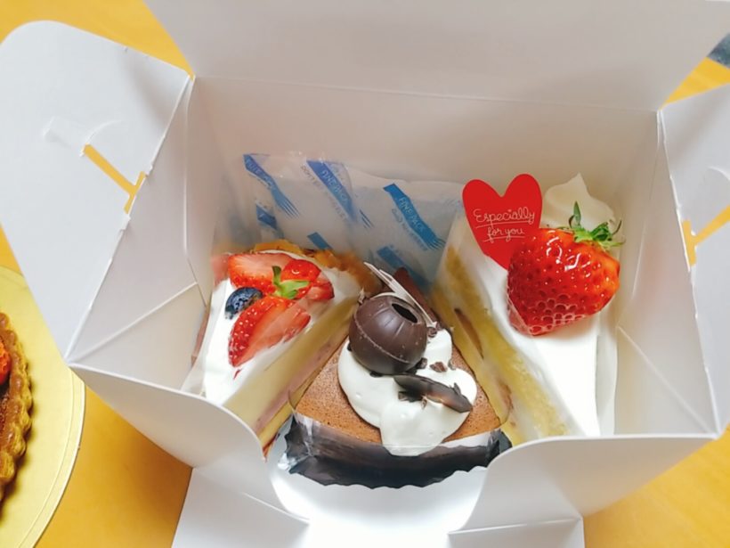 ほかにもせっかくなので系統の違うカットケーキも買ってきました。ひだりからレアチーズ・チョコ・ショートと、どれもハズレ無しのクオリティです😋うまし…