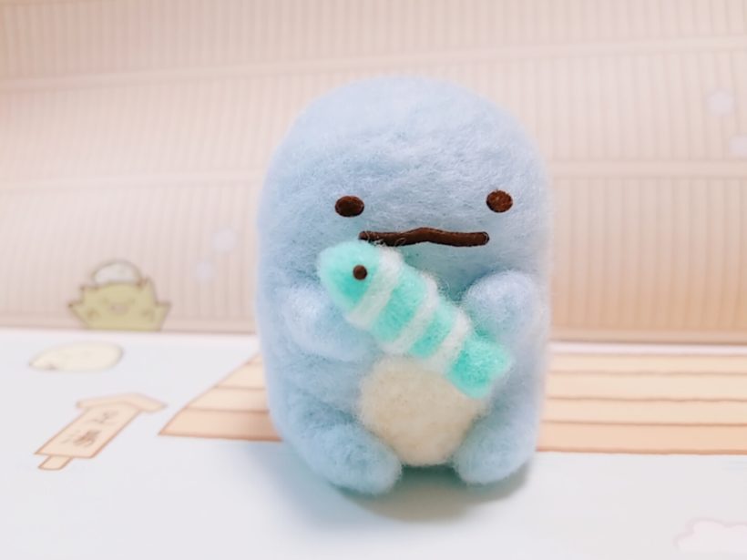どういう風の吹き回しか、あらゆる創作活動にあまり興味がなかった妹が羊毛フェルトに手を出し始めました。すみっコぐらしのテキスト付きセットを購入したそうで、今日1日ずっっっとチクチクやっていたようです。