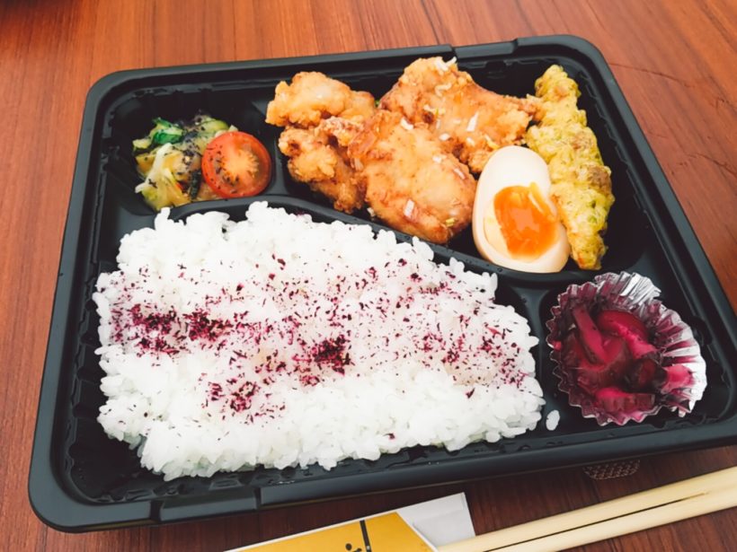 メニューは会社から徒歩圏内の居酒屋『夜座和』さんのお弁当です!私が頼んだのは『塩レモン唐揚げ弁当』。
