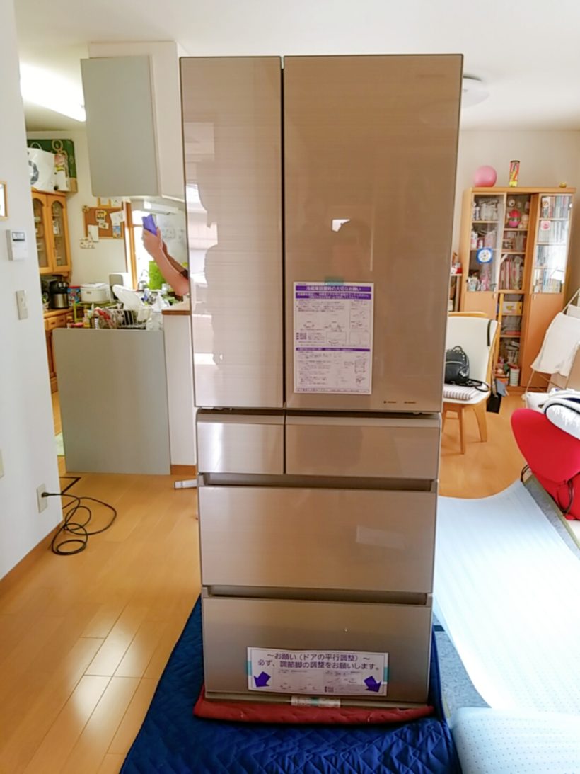 新しい冷蔵庫は両開きでスペースも広くてすごく便利!父は『ここまで大きいのいるか〜?』とギリギリまで怪訝そうにしていましたが、私と母は大満足なチョイスでした。四人家族なんだからたくさん入る方がいいに決まってますしね!