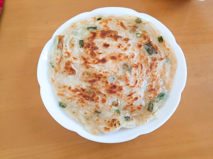 シャオピンと違って平べったいです。あちらは肉の餡が入ったおやきみたいな食べ物ですが、こっちはどちらかと言うとチヂミっぽい食感と味でした!