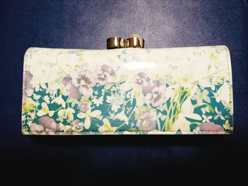 この財布は大学時代にバイト代で買いました。花柄であまり見かけないデザインのものが欲しくて、『Ted Baker』というブランドにたどり着きました。