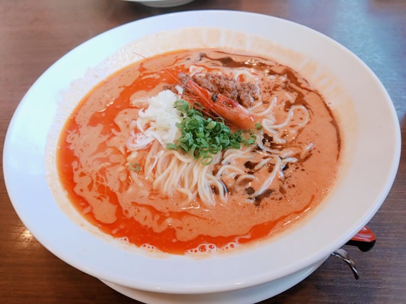 エビを殻ごと使った濃厚な坦々スープが細めの麺にたっぷり絡みついていて、一口一口の旨みの重さがえげつない!