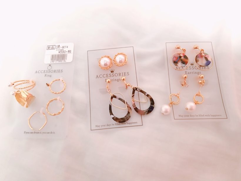 しかしこのセカストでは、使用感がほとんど感じられない即戦力になる可愛さのイヤリングの2個セットやリングセットが500円ちょっとで売られていました!