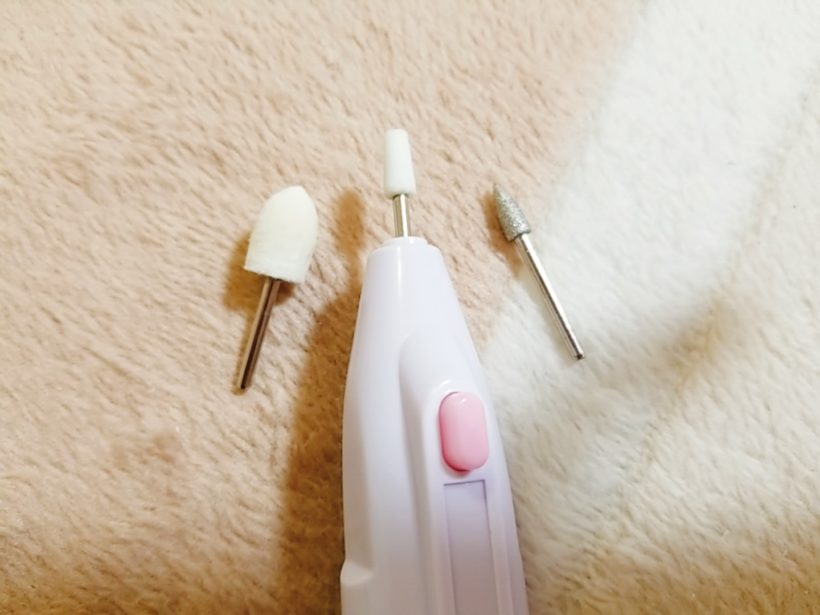 本来爪の形を整えるための細くて白いアタッチメントも、前に買った電動ネイルケアよりもしっかり削れて快適でした。